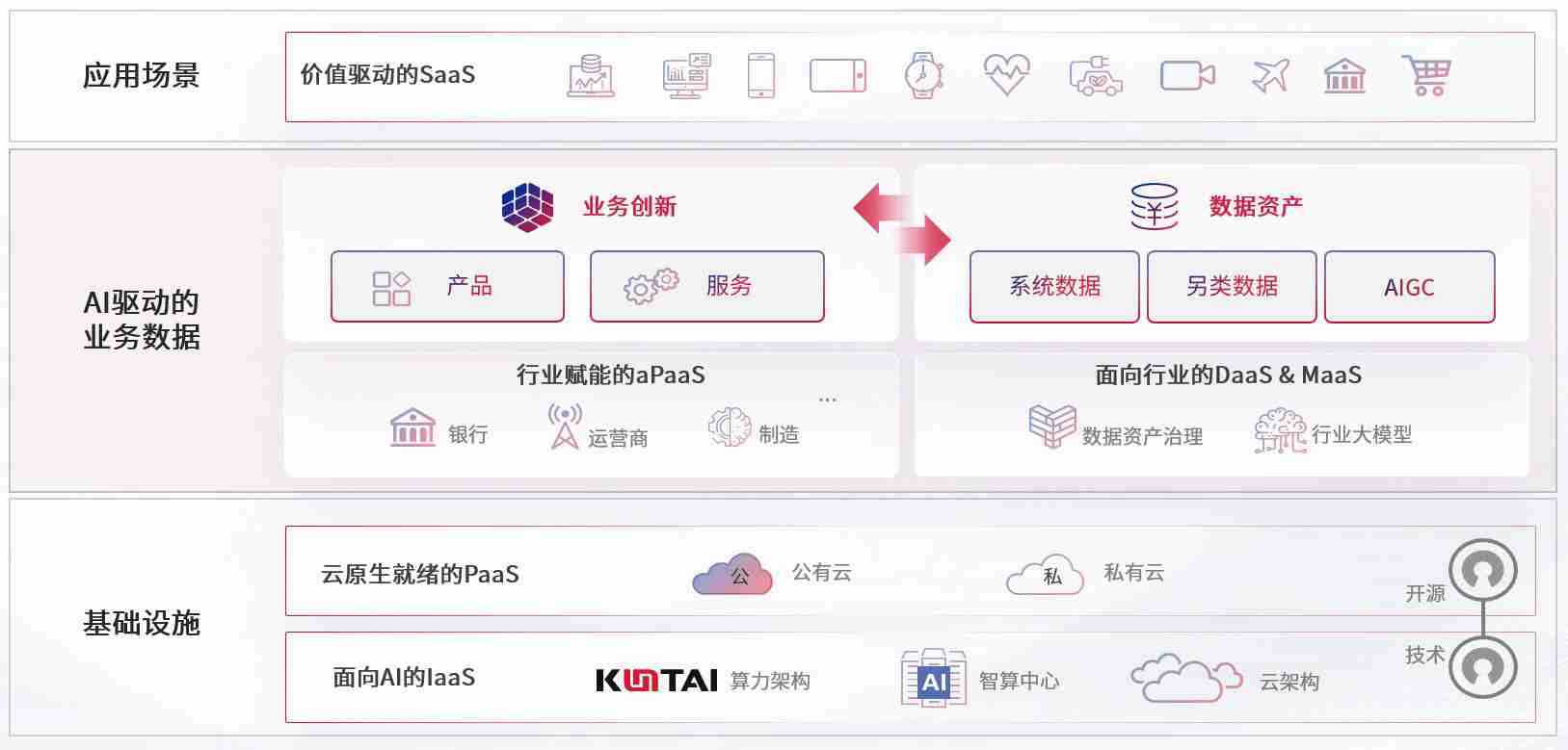 数字时代,,围绕企业数字化转型的关键要素,,z6com尊龙数码开创性的提出数云融合战略和技术体系框架,,,着力在云原生、、数字原生、、AI原生和信创产业上架构产品和服务能力,,为处在不同数字化转型阶段的快消零售、、汽车、、金融、、、、医疗、、、、政企、、、、教育、、、、运营商等行业客户提供泛在的敏捷IT能力和融合的数据驱动能力,,构建跨界融合创新的数字业务场景和新业务模式,,助力企业级客户建立面向未来的核心能力和竞争优势,,全面推动社会的数字化、、、智能化转型升级。。。